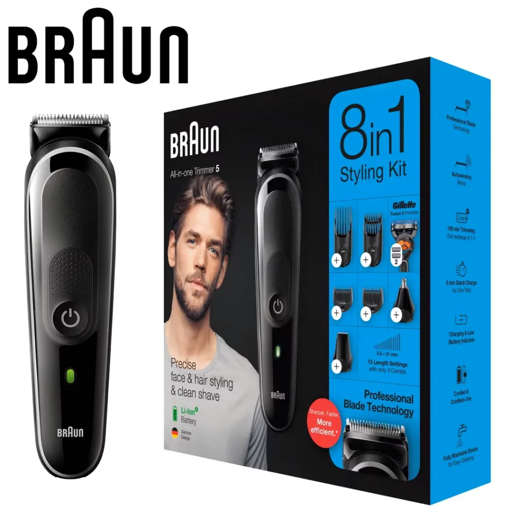 ست اصلاح مردانه براون مدل Braun MGK5260 یک محصول 8 کاره سری 5 برند آلمانی براون برای اصلاح آقایان است.