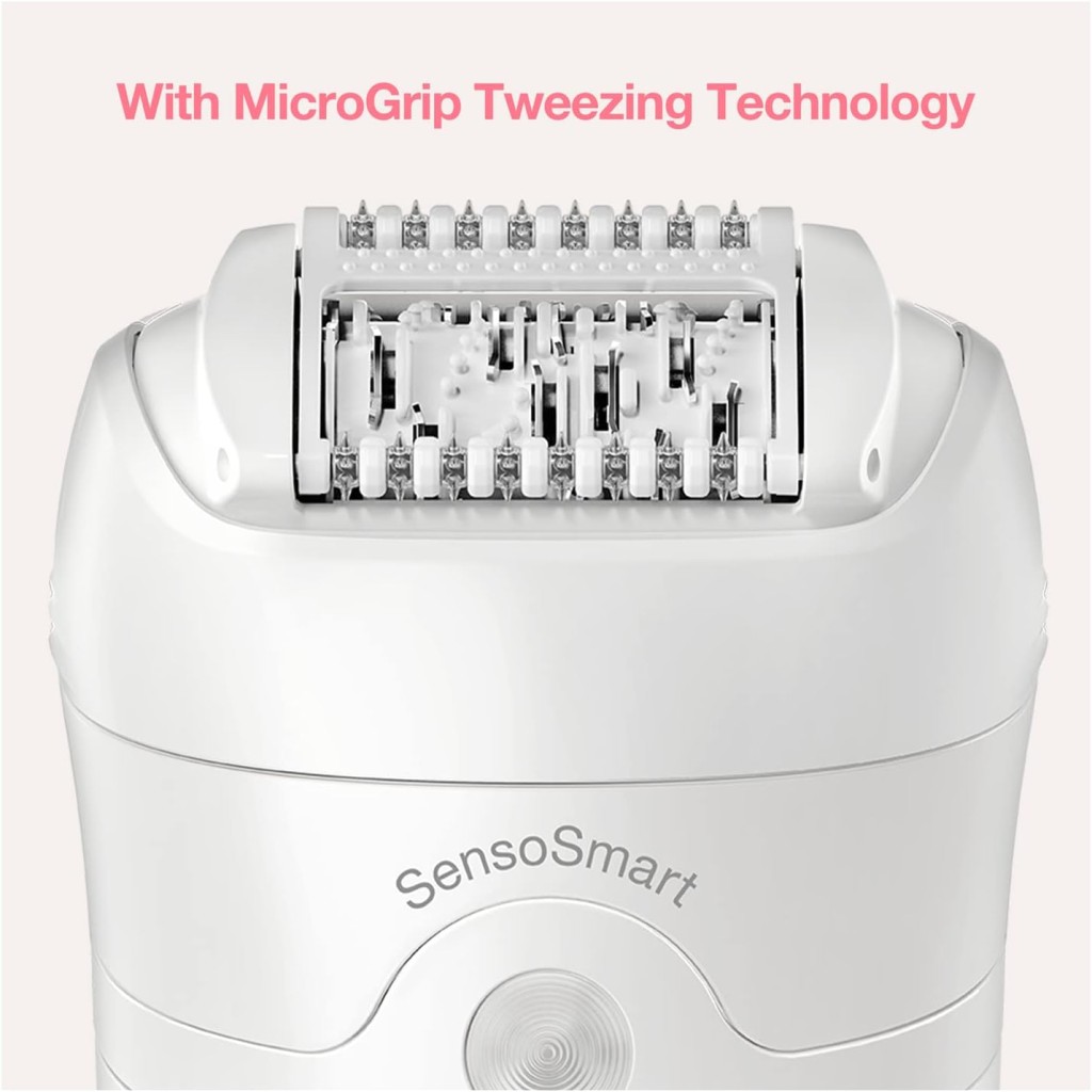 این اپیلاتور جذاب مانند مدل های قبلی خود به یک سری موچین ۲۸ عددی با عملکرد میکروگریپ تجهیز شده که شما با آن میتوانید کوچک ترین موها زائد را از بدن خود جدا کنید همچنین روی سری این قطعه ماساژوری نصب میشود که به همراه تعدادی فولیکل ۵ ضلعی شکل باعث ایجاد تخلخل در اعصاب میشود که نتیجه آن احساس درد بسیار کمتری است .