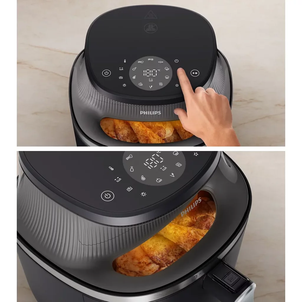 به لطف بهرهگیری از سیستم گردش هوای گرم همواره بشقاب هایی پر از وعدههای محبوب خود را خواهید داشت که البته از سلامت برخوردار بوده و به ادعای کمپانی فیلیپس تا 90 درصد نیاز به مصرف روغن در زمان پخت را کاهش میدهد.